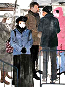 《行人》之二【纸本彩墨】(局部)