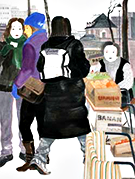 《行人》之三【纸本彩墨】(局部)